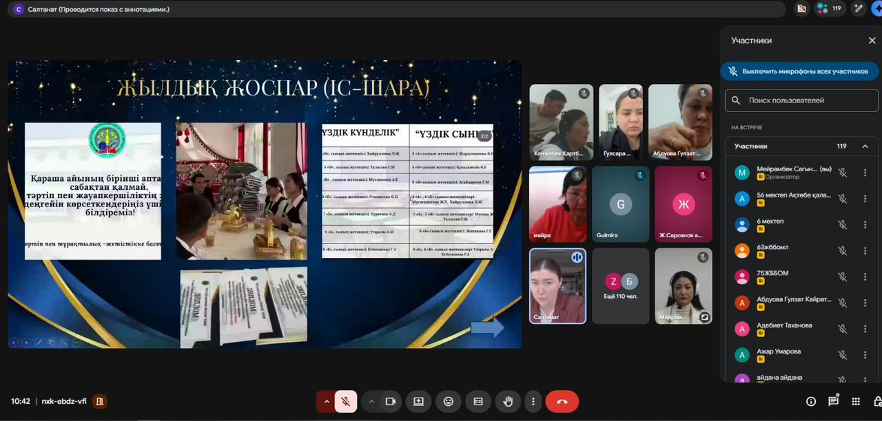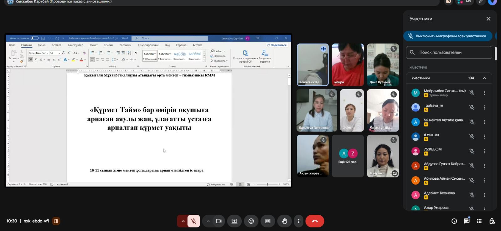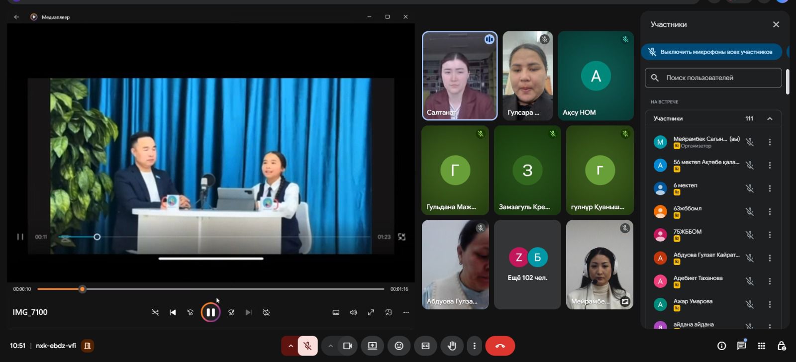 - Қуанышбекова Дана Тынықбайқызы «Үркер кинофестивалі: тәрбие мен шығармашылықты ұштастыру тәжірибесі» тақырыбында тәжірибесімен бөлісті;