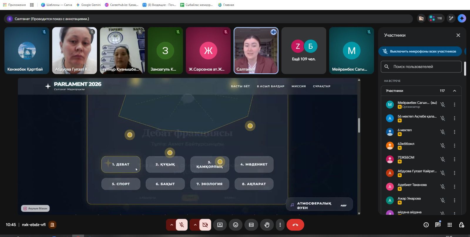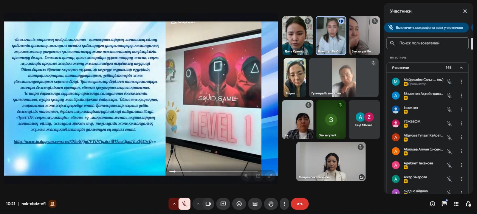 - Гапбасова Бахытгүл Мұқанбетсадыққызы «Level-Up: соңғы мүмкіндік» тақырыбында заманауи форматтағы «Кальмар ойыны» әдісін таныстырды;