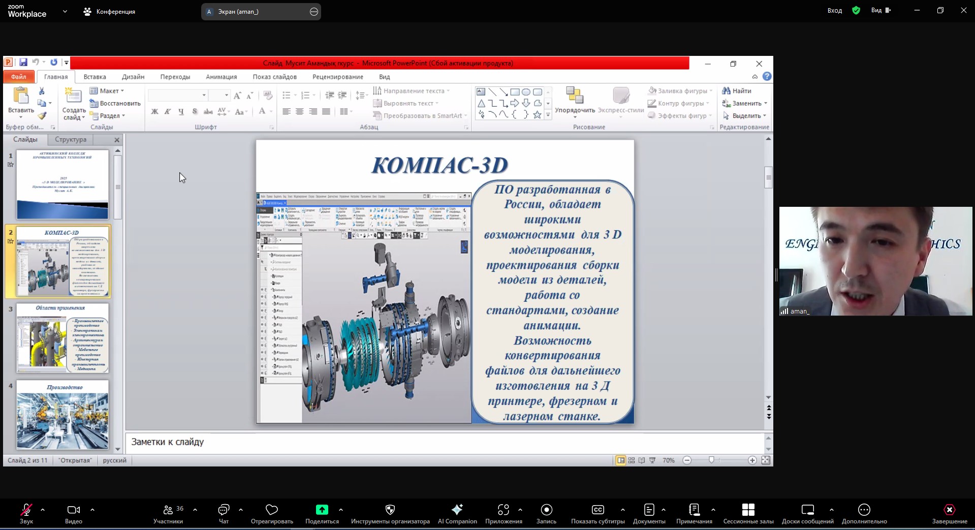 Ақтөбе өнеркәсіптік технологиялар колледжінің арнайы пәндер оқытушысы Мусит Амандық Қасенғалиұлы 3D модельдеу технологиялары және олардың болашақ инженерия саласындағы маңызы туралы құнды мәліметтерімен бөлісті. Өзінің кәсіби тәжірибесіне сүйене отырып, қазіргі инженерлік жобалау процестерінде 3D модельдеудің рөлі мен тиімділігін жан-жақты түсіндіріп, туындаған сұрақтарға жауап берді.