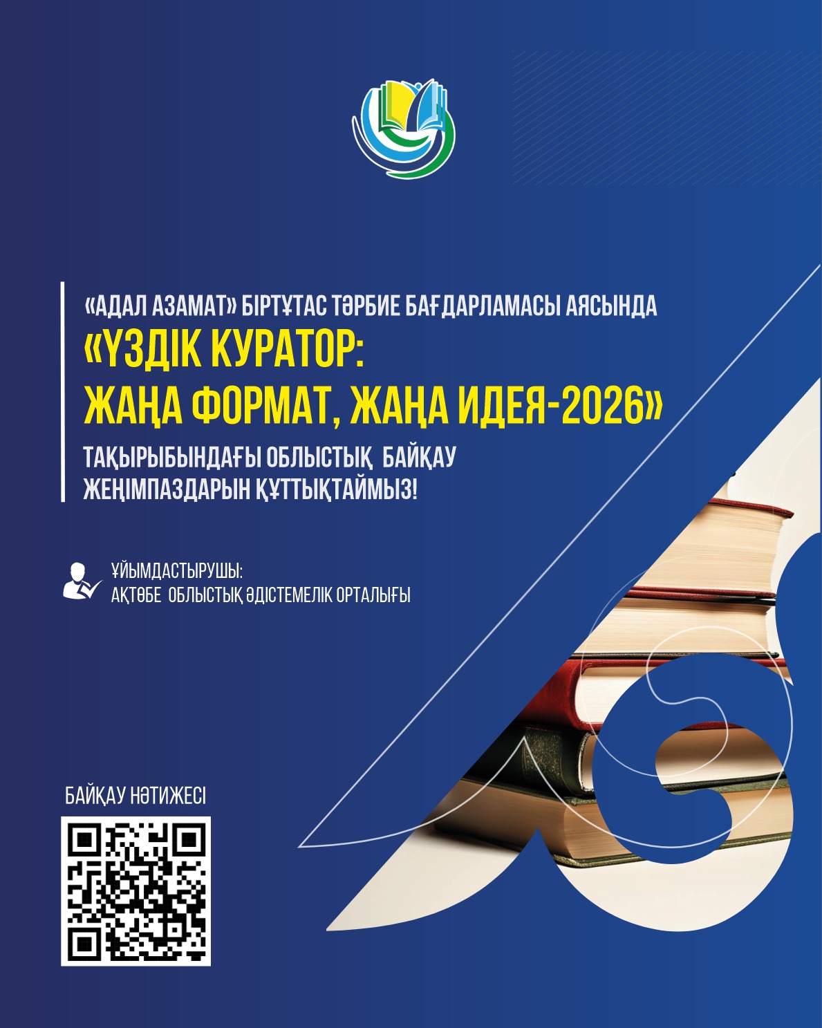 С 2 по 20 февраля 2026 года Актюбинским областным методическим центром в соответствии с приказом Министра образования и науки Республики Казахстан от 11 декабря 2025 года № 281 в рамках единой воспитательной программы «Адал Азамат» был организован областной конкурс «Үздік куратор: жаңа формат, жаңа идея-2026» с участием кураторов учебных групп организаций ТиПО Актюбинской области.