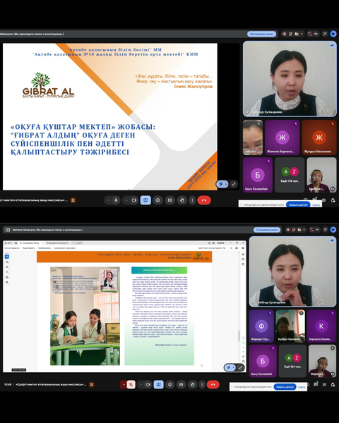 - Куландиева Бибинур Куландыкызы, учитель казахского языка и литературы средней общеобразовательной школы №10 города Актобе, и Исмагамбетова Венера Конысовна, библиотекарь данной школы, представили совместный проект Развитие личности учащегося в онлайн-пространстве «Ғибрат ал» продемонстрировав эффективные подходы к формированию читательской культуры и духовно-нравственного воспитания в цифровой среде.
