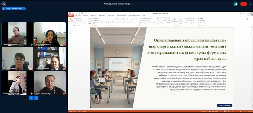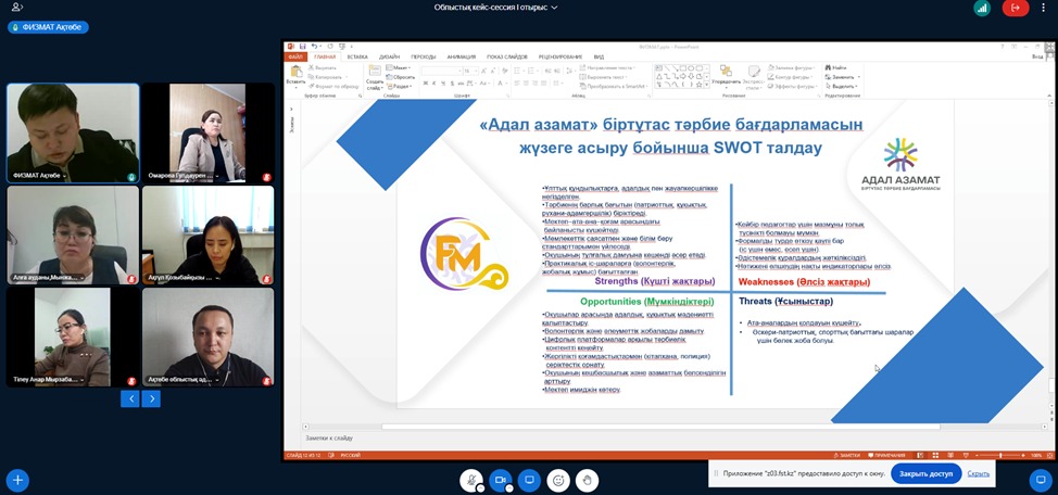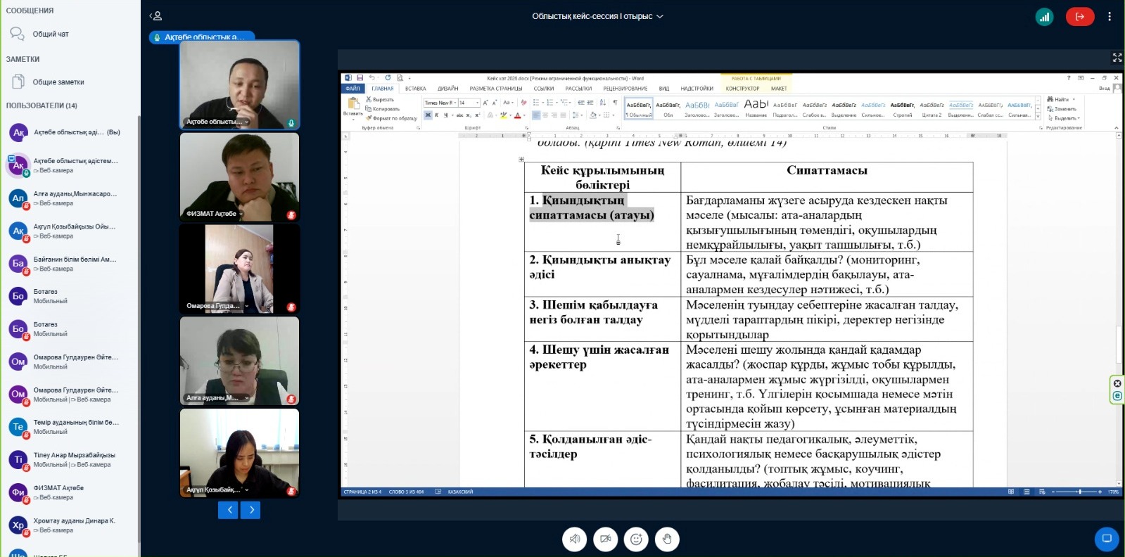 В рамках первой кейс-сессии методисты Каргалинского и Уилского районных отделов образования, а также заместитель директора по воспитательной работе областного специализированного физико-математического лицея-интерната представили свои кейсы по дальнейшему эффективному внедрению программы.